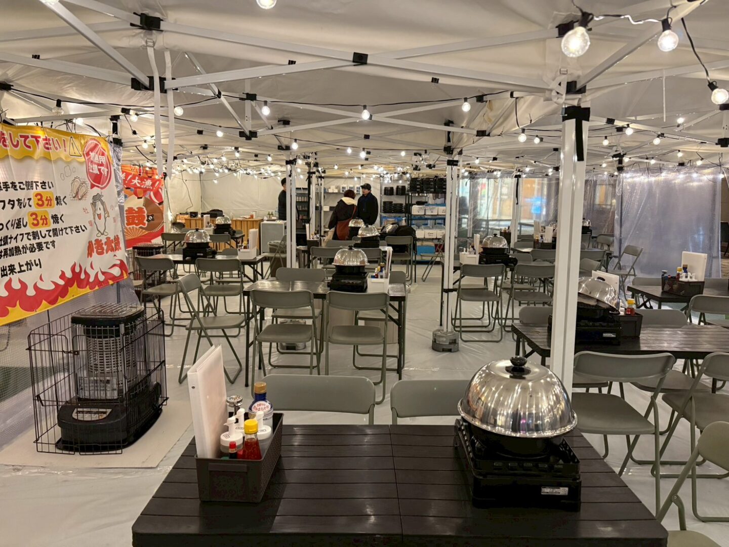 店内は全席テントと横幕でしっかりと覆い、ストーブも完備。